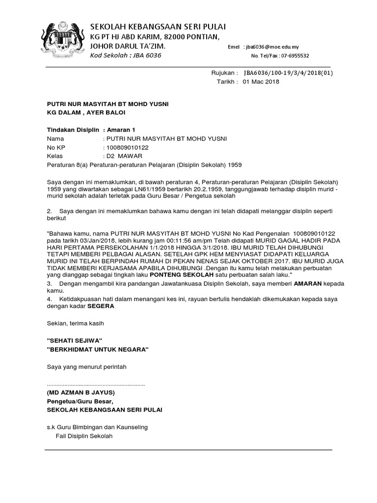 Doc Surat Amaran Ponteng Sekolah Muhammad Elyas Sulaiman Academia Edu