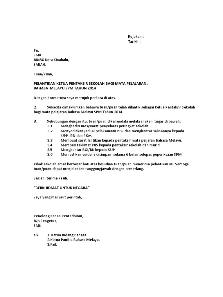 Surat Pelantikan Sebagai Ketua Pentaksir Pentaksir Pt3 2014