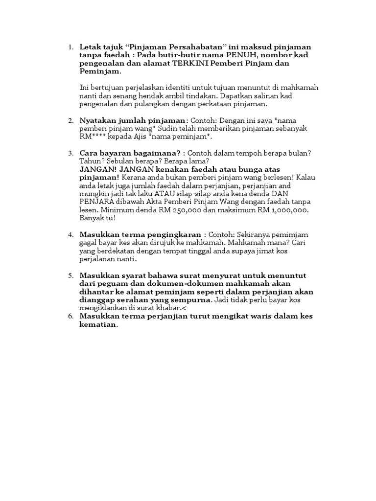 Nak Bagi Kawan Pinjam Duit Guna Surat Perjanjian Pinjaman Ini