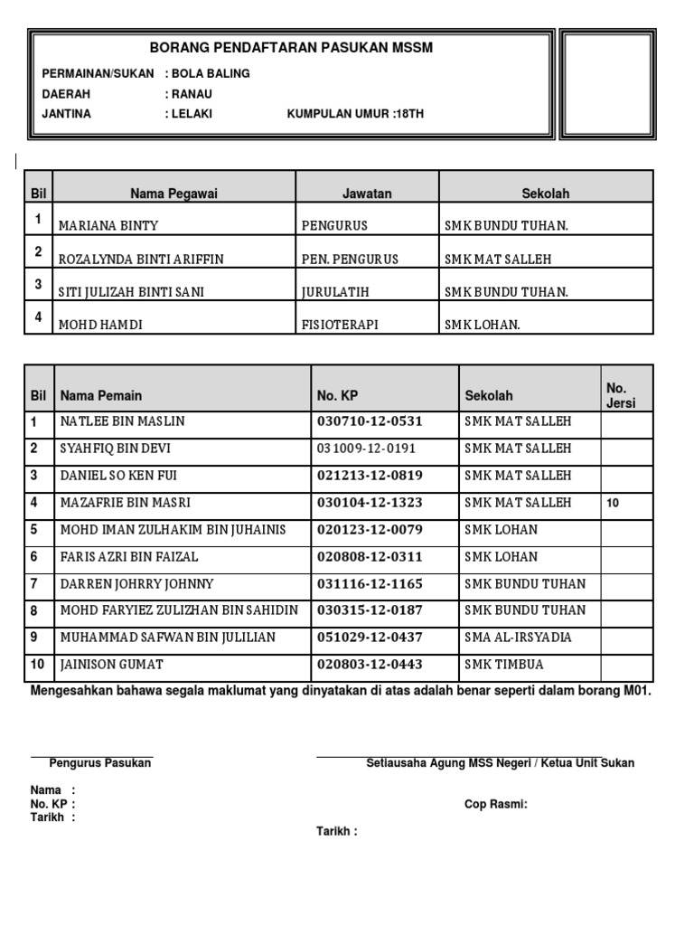 Borang Permohonan Masuk Ke Tahun 1