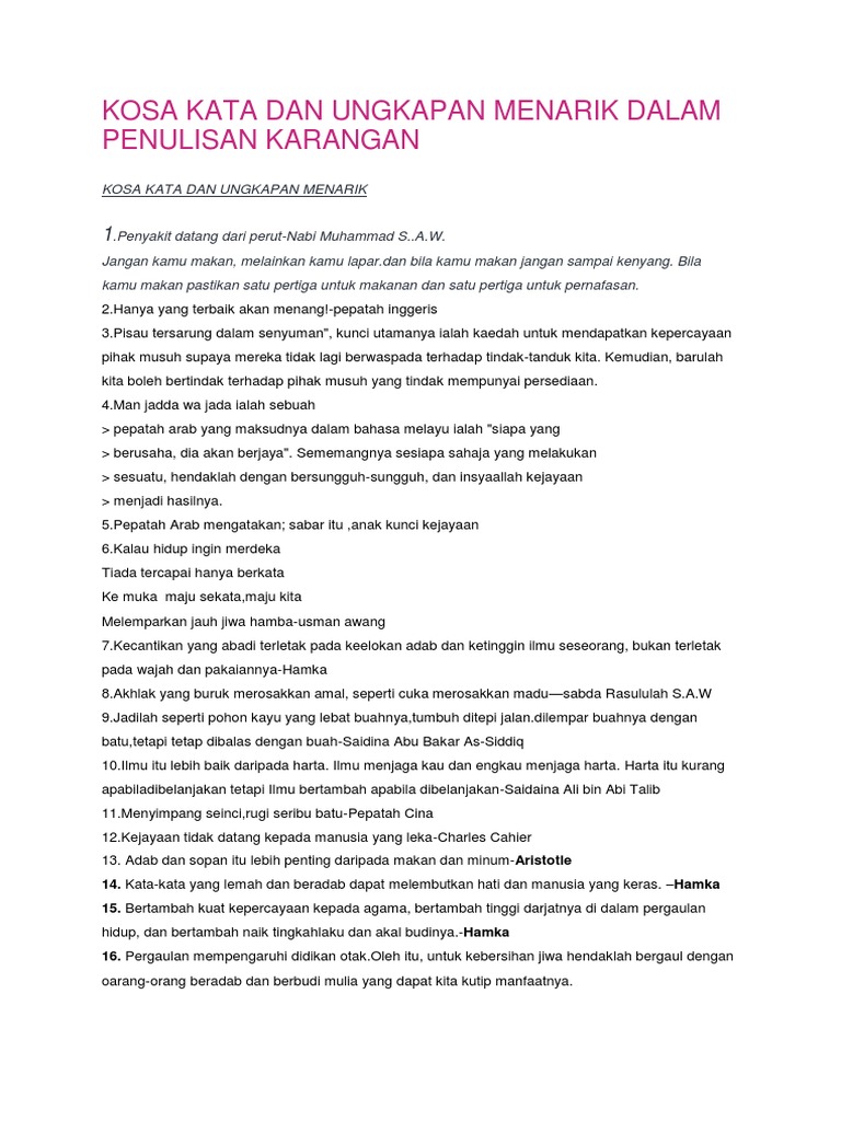 Kosa Kata Dan Ungkapan Menarik Dalam Penulisan Karangan