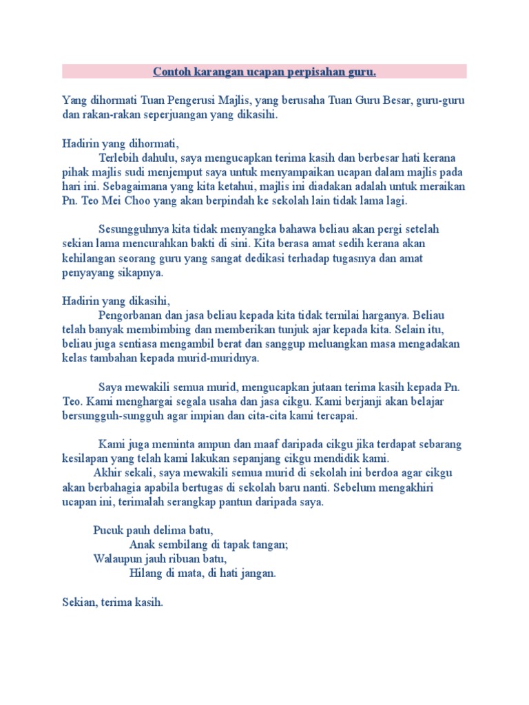 Doc Contoh Ucapan Wakil Murid Untuk Majlis Persaraan Sharina Sharina Academia Edu
