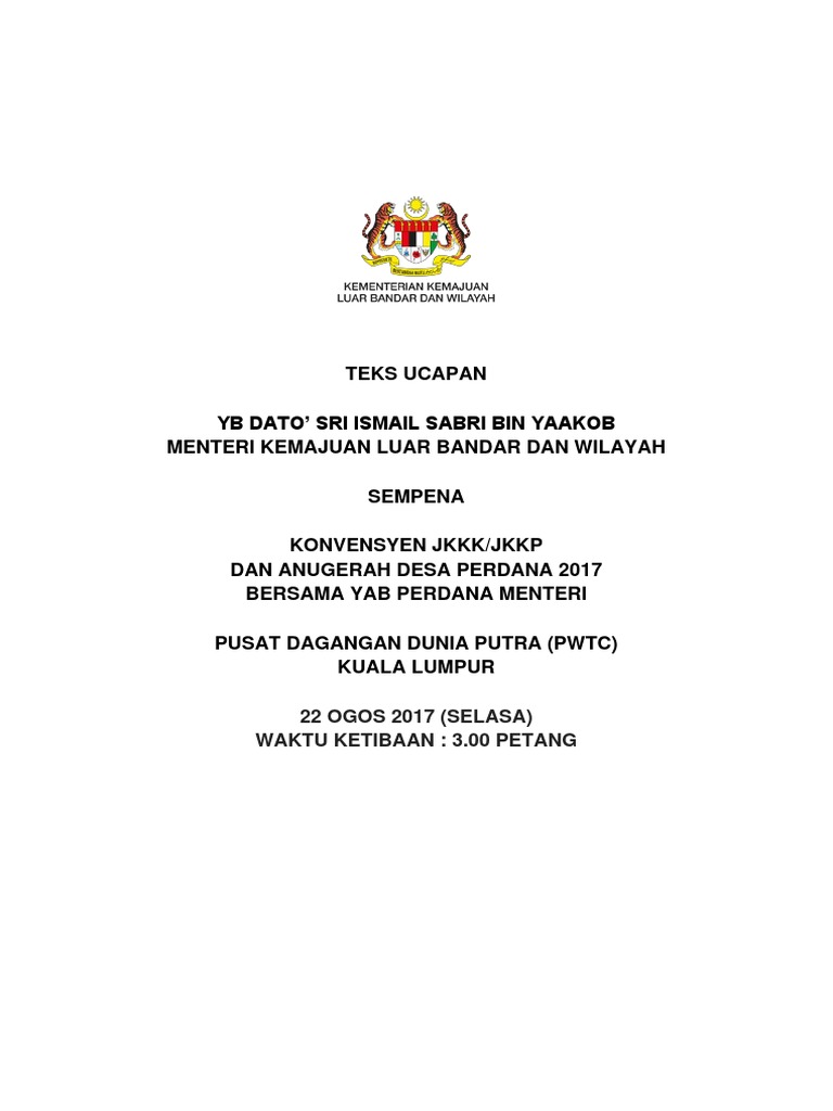 Teks Ucapan Konvensyen Dan Anugerah Desa Perdana Bersama Perdana Menteri