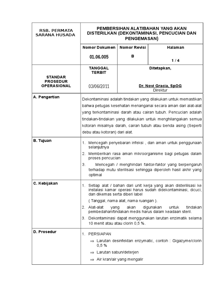 Spo Pembersihan Alat Yang Akan Disterilisasi