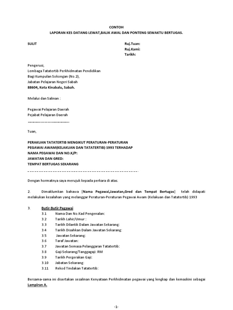 Full Page Surat Tunjuk Sebab Atas Kesalahan Ketidakhadiran Bertugas Dan Dapat Dikesan C Contoh Surat