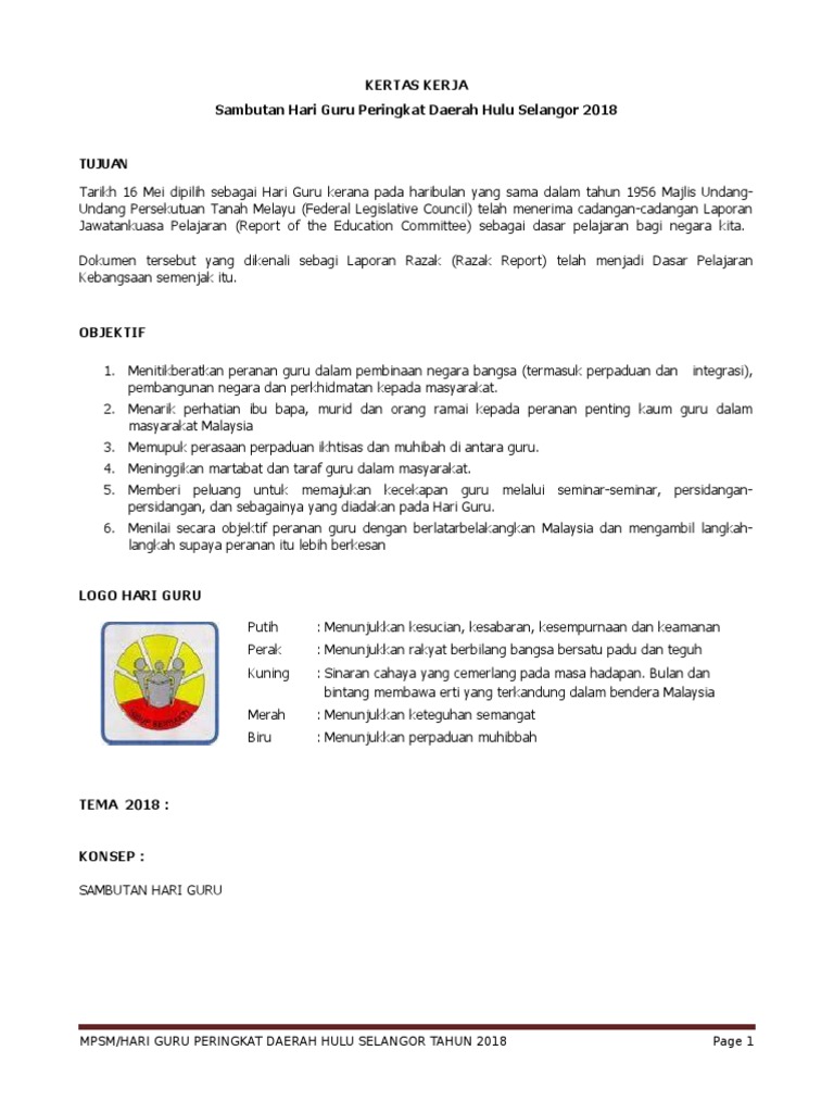 Kertas Kerja Hari Guru 2019 Pages 1 6 Text Version Anyflip