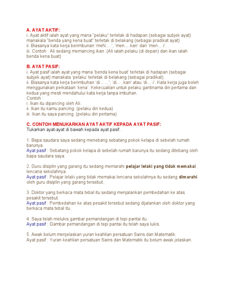 Ayat Aktif Pasif Pelajar Doc