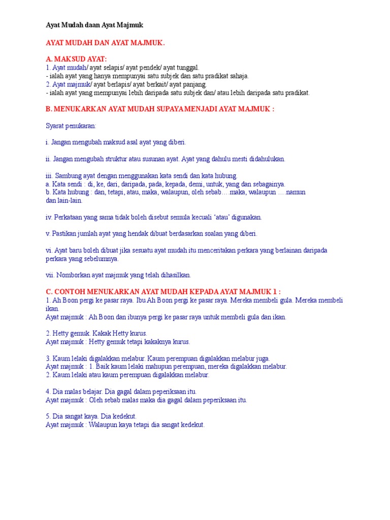 Ayat Mudah Dan Ayat Majmuk Pdf Document