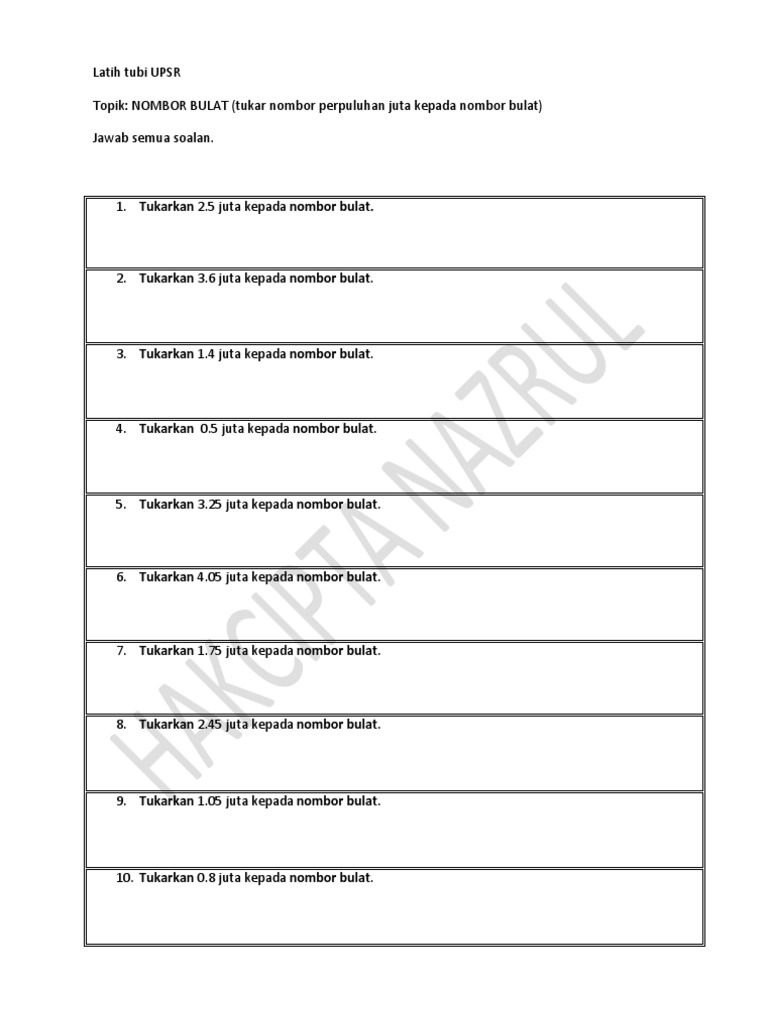 Nombor Bulat Tukar Nombor Perpuluhan Juta Kepada Nombor Bulat