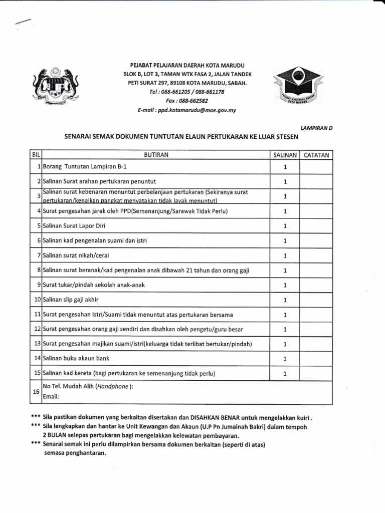 Borang Tuntutan Elaun Pertukaran Ke Luar Stesen Xls Document