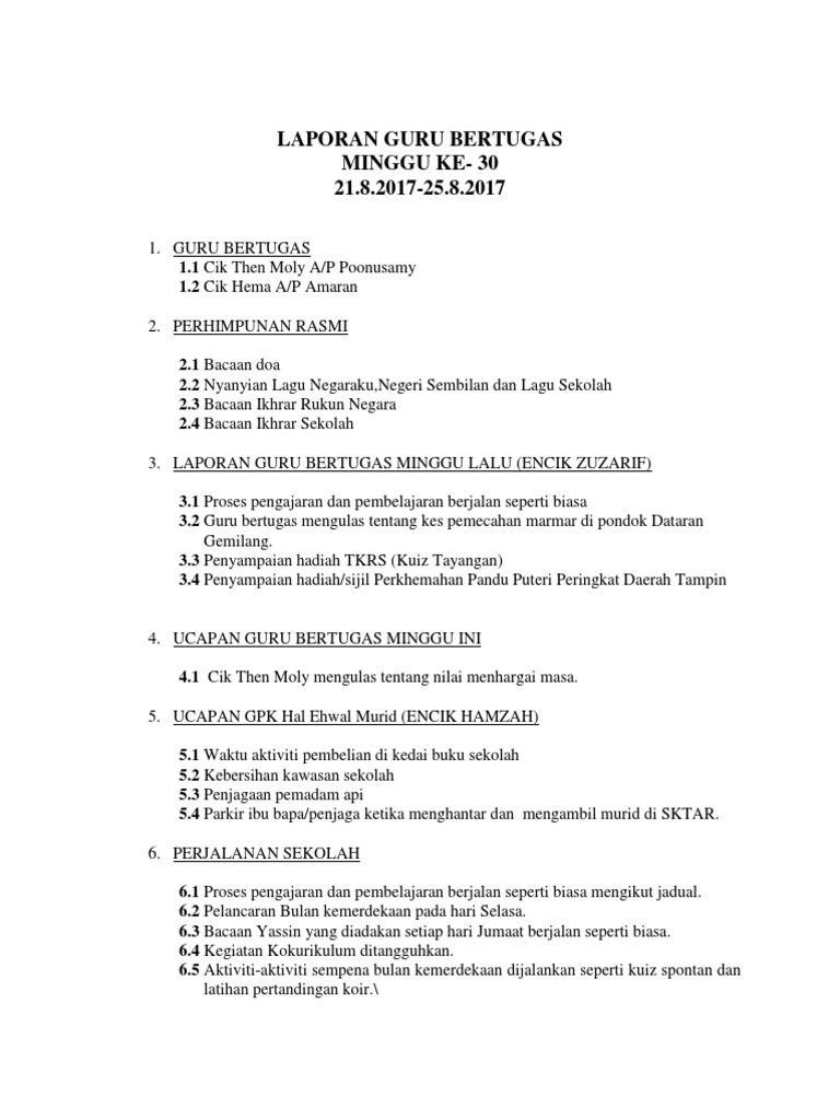 Teks Ucapan Laporan Guru Bertugas Mingguan Smkds