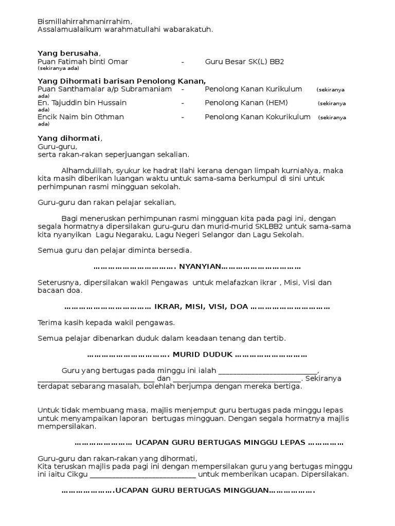 Teks Pengacara Majlis Perhimpunan Rasmi Mingguan