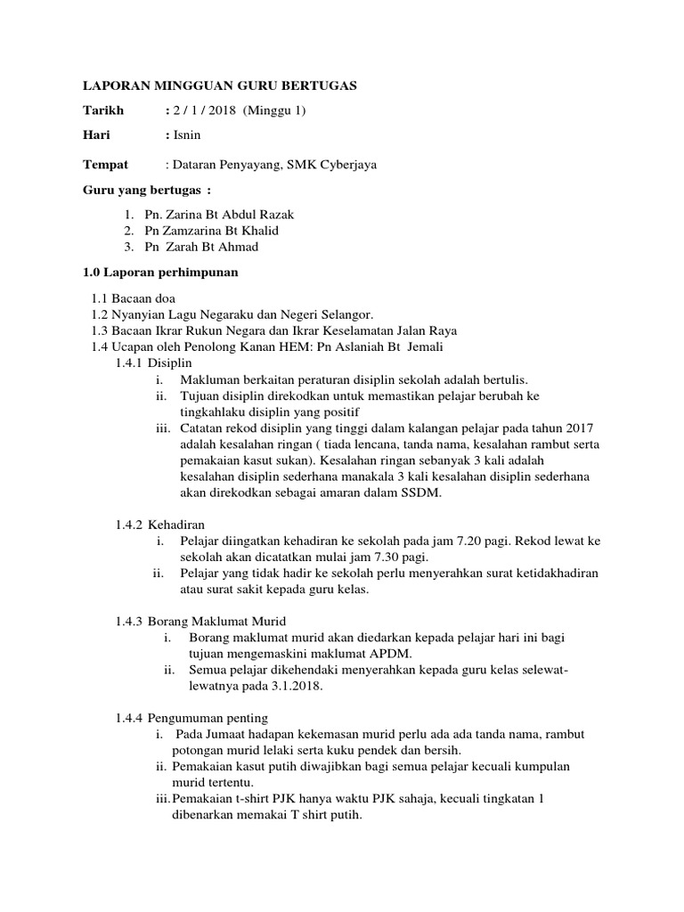 Format Laporan Guru Bertugas Mingguan 2019 New