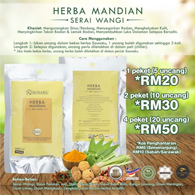 Herba Mandian Saunaku Serai Wangi Shopee Malaysia