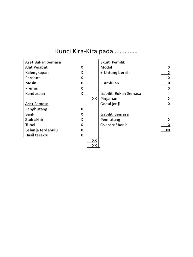Kunci Kira Kira Penyata