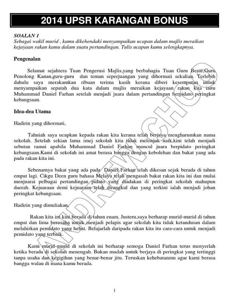 Karangan Contoh Upsr Tajuk Tuliskan Epic Smart Bangsar Facebook