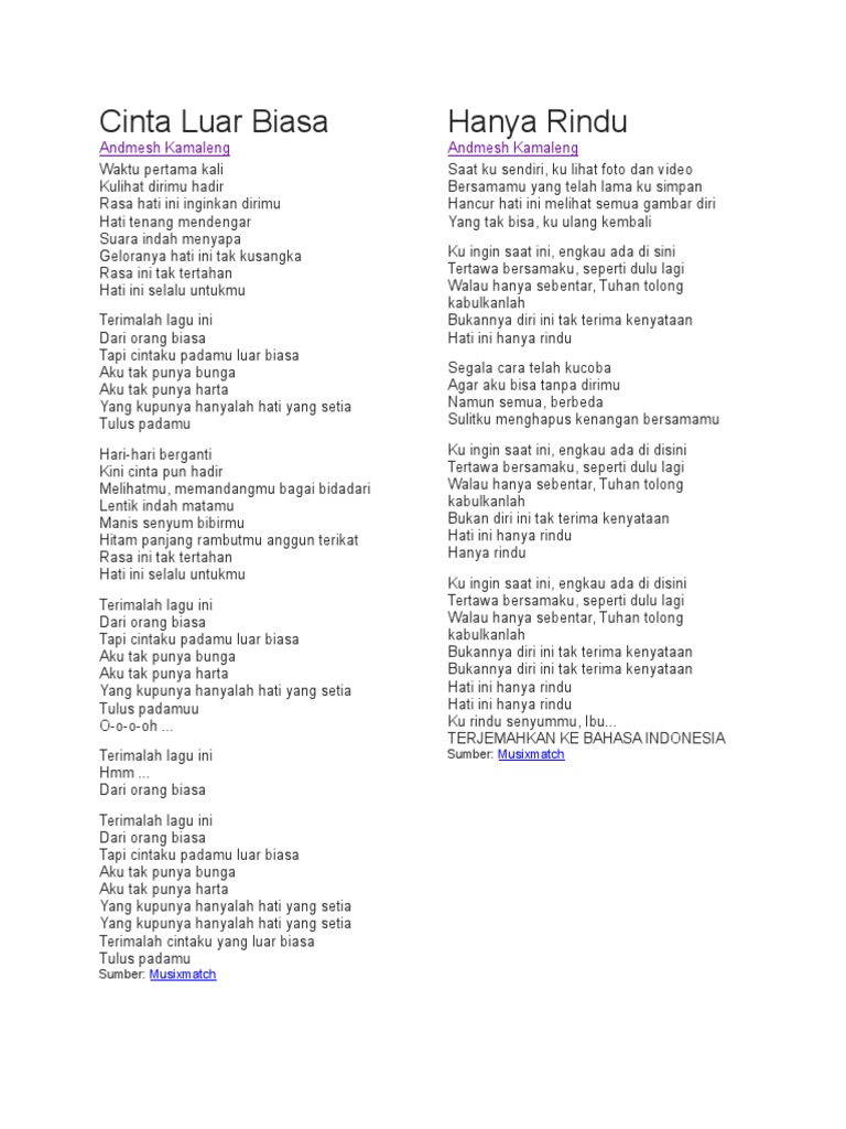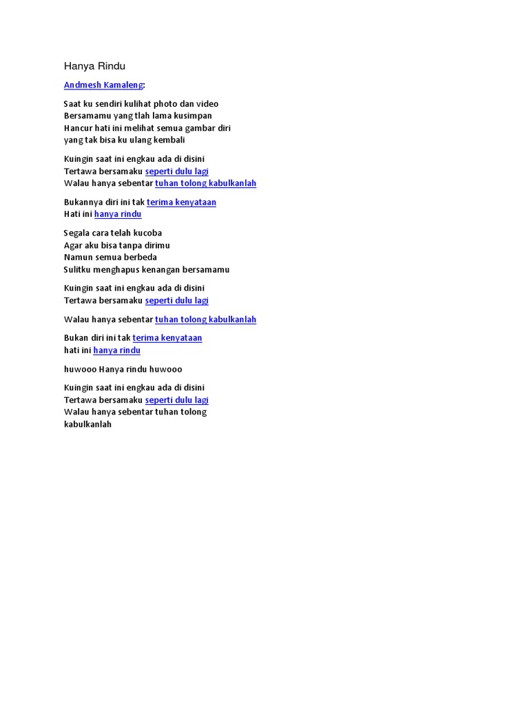 Lirik Lagu Andmesh Kamaleng Hanya Rindu Wattpad