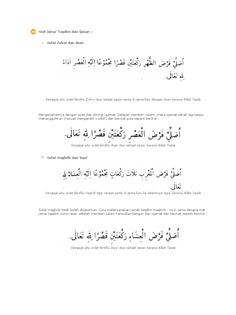 Niat Jama Taqdim Dan Qasar