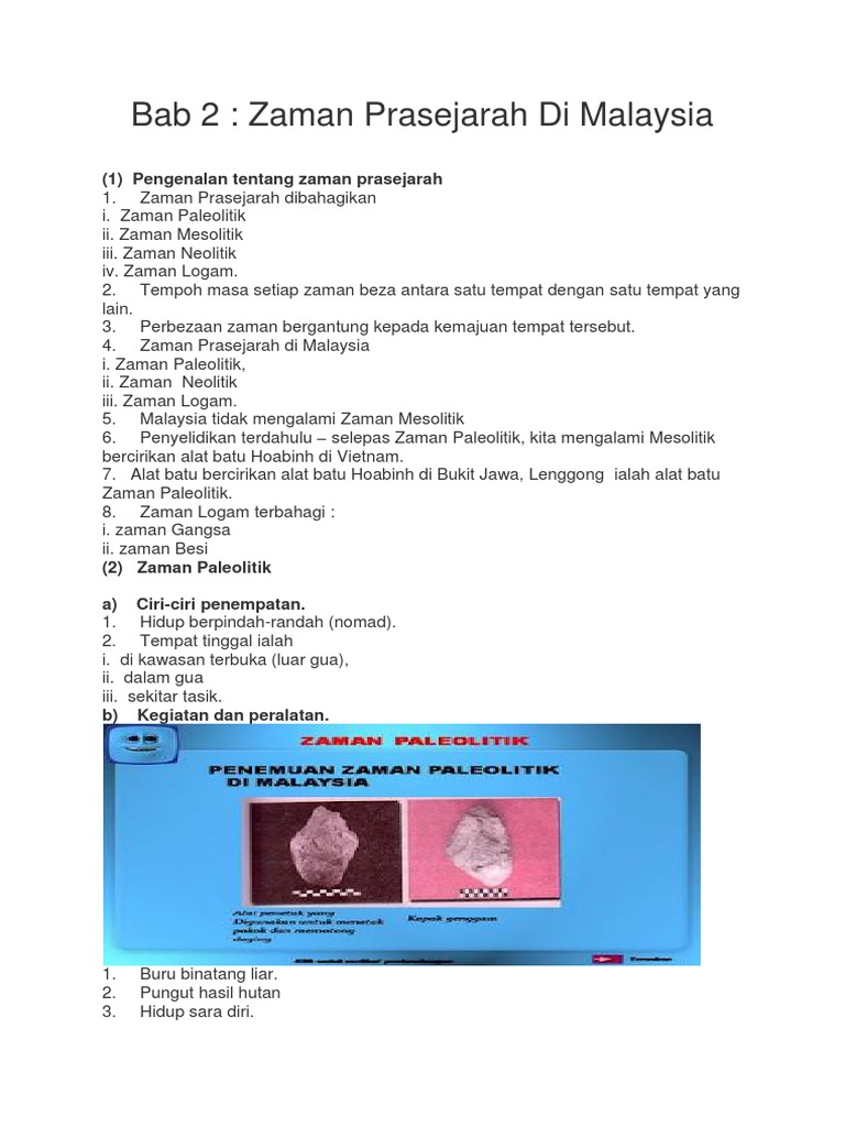 Nota Sejarah Tingkatan 1 Bab 2 Zaman Prasejarah Di Malaysia