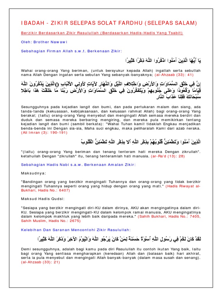 Ibadah Zikir Selepas Solat Fardhu Malay Language