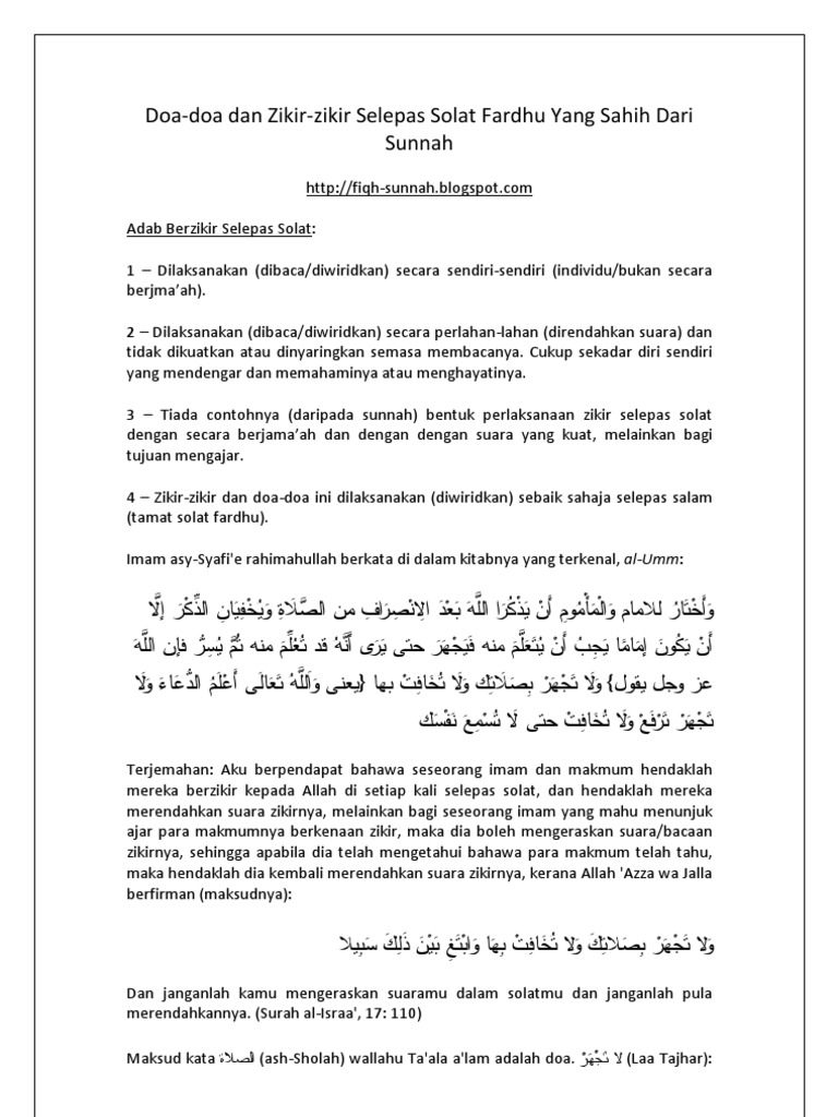 Zikir Selepas Solat Fardhu Mengikut Sunnah Nabi S A W Kutipan Pelajaran Hidup Kutipan Agama Kekuatan Doa